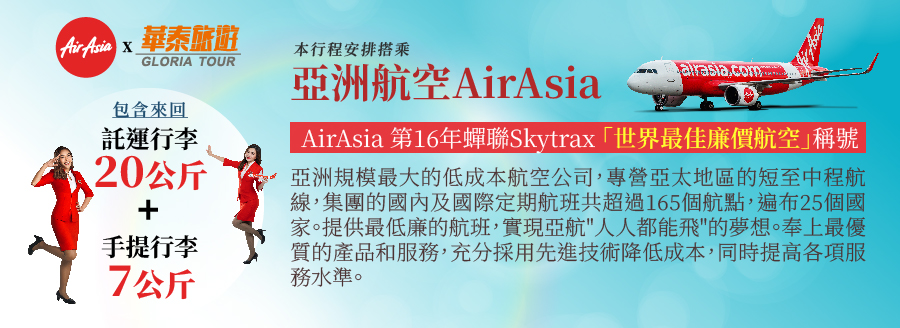▲此亞洲航空行程全程行李托運20公斤,手提行李7公斤,包含機上餐食
