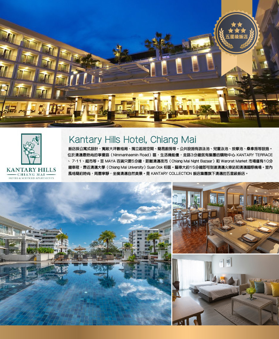 住宿:升等五星清邁KANTARY HILLS NIMMAN 或同等級