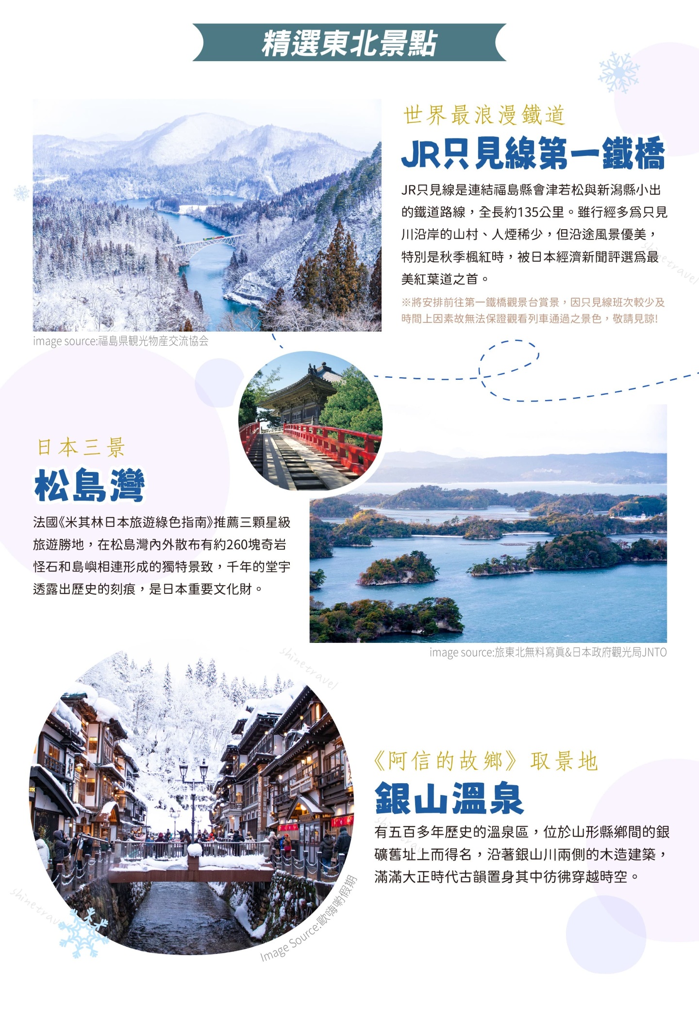 ※備註說明:因銀山溫泉實施時段人數管制公告,實施期間為12月初至2026年3月底(詳見官網公告),如遇時段預約額滿或其他不可抗力因素之影響導致無法前往,將改前往奧州三大名湯~飯坂溫泉街散策,敬請見諒!