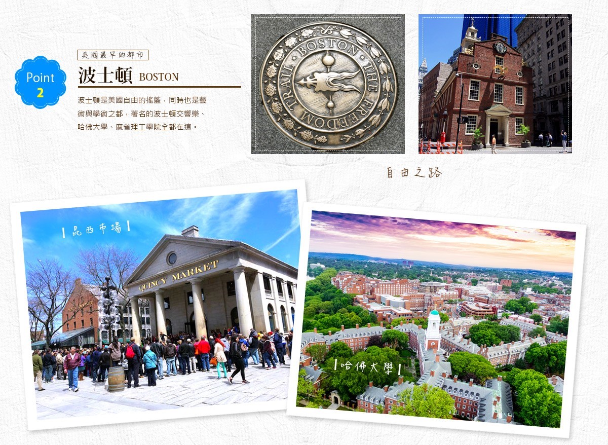 ♠ 波士頓:美國古都,當年揭起美國獨立革命的地方,一個新舊並存,風情萬種的城市。